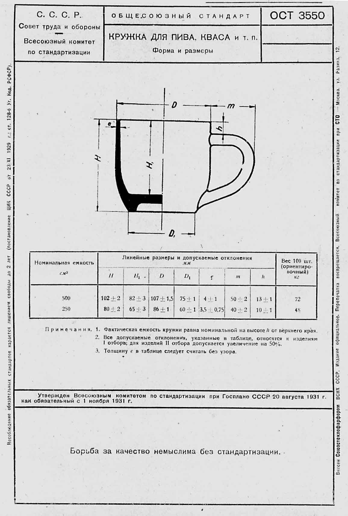 Хорошо известная российскому потребителю аббревиатура ГОСТ постепенно уходит в прошлое. В 2002 году начался переход на новую, систему, основанную не на Государственном Стандарте, а на технических регламентах. Тем больше эмоций вызывает строгий Советский стандарт на обычную пивную кружку, стандарт, родившийся в эпоху бурной индустриализации страны Советов.