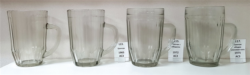 Весьма любопытная кружка. До сих пор (2025 год) считалось, что данный вид кружек выпускался только на Артёмовском стекольном заводе с 1965 по 1968 год №113. А тут Уршельский стекольный завод, который после ВОВ первые кружки выпутил в 1969 году и это была "Барная" №183. Мы только можем предпологать, что на УрШЗ в 1968 году или начале 1969 года были пробные выпуски "гранчака" и "барной" и победила "барная". Которая и пошла в серийное производство. За это говорит отсутствие поверочного клейма, кружка не предназначалась для дальнейшей эксплуататции в общепите. В том же 1969 году начался выпуск "барной" и на АСЗ №175. Которую они благополучно и выпускали три года. А затем, в 1971 году на АСЗ начался выпуск кружки типа "жамчики" №149, который они уже выпускали до конца работы завода начало 2000-х (Но мы надеемся, что с течением времени история завода будет продолжена). Но тип "гранчак" АСЗ ещё два раза пытался реанимировать, подвергнув модернизации (в 1972 г. №115, 1974 г. №116 и 1975 г. №117), но каждый раз попытки были недолгие.